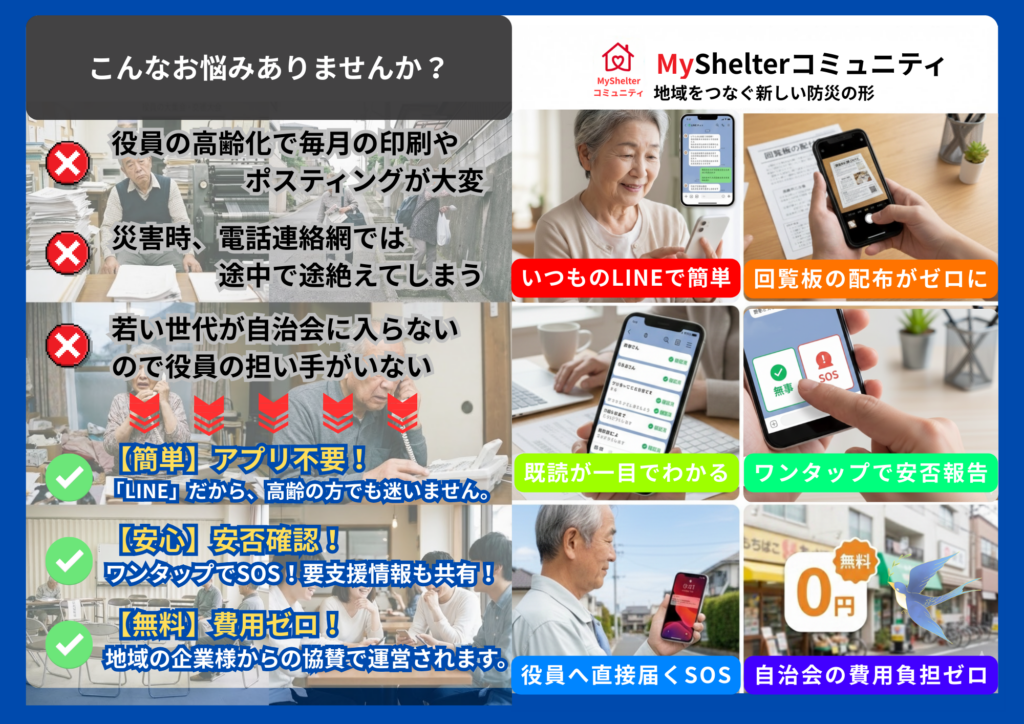 スマホ1つで自治会が変わる!LINEで完結する次世代の「デジタル回覧板&防災ホットライン」MyShelterコミュニティ