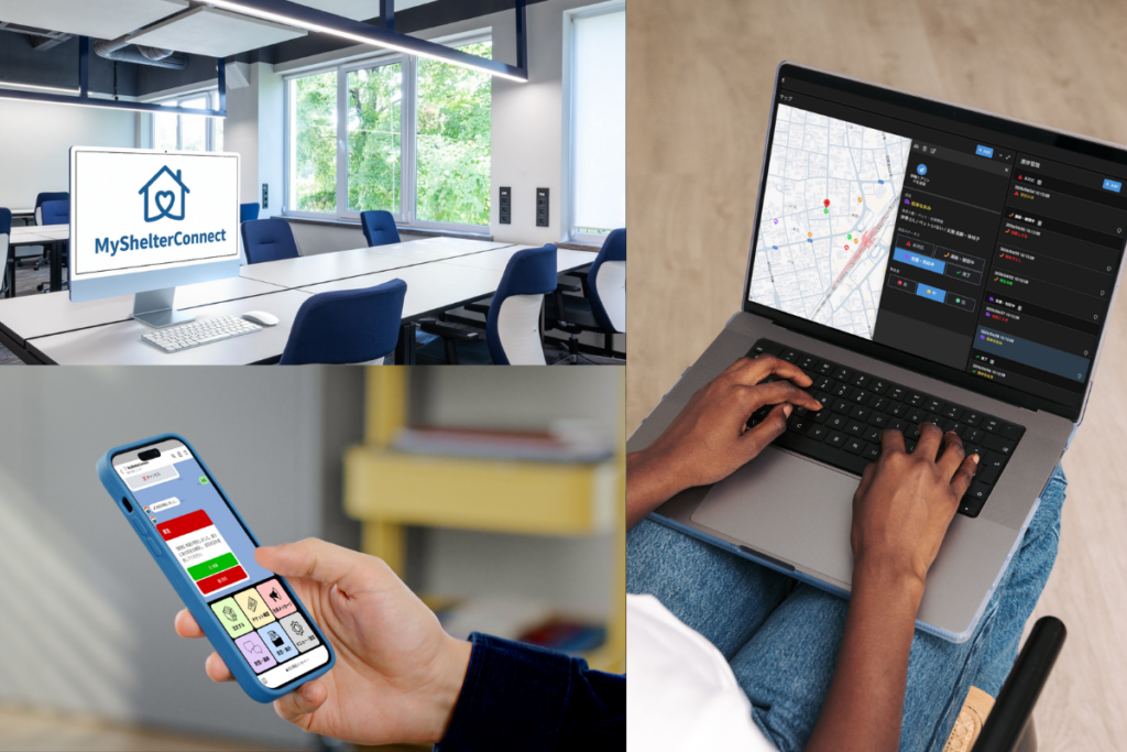 MyShelter Connectは、企業の司令部(本部)と現場の社員をリアルタイムに繋ぐ「次世代型の企業防災・BCPインフラ」です。