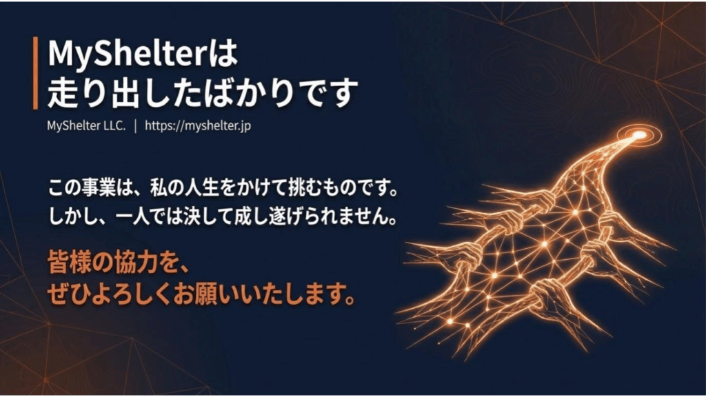 MYSHELTER合同会社は、この問いに対する答えを共に創り上げるパートナーを探しています。