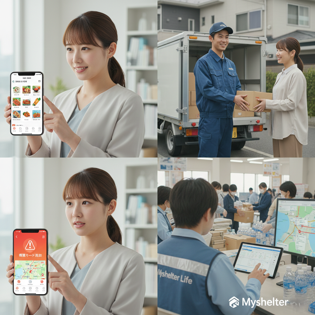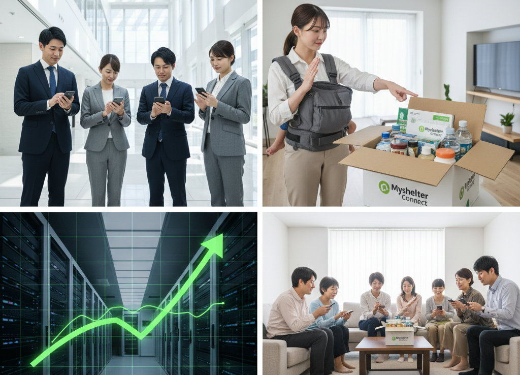 「つなぐ」では、企業が従業員を支える「福利厚生」の仕組みを使って、毎月必要な物資をご自宅へ届ける「Myshelter Connect」を開発しました。
